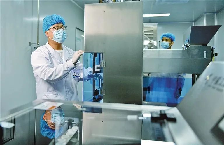 尚德艾康药业工作人员正在胶囊填充车间工作