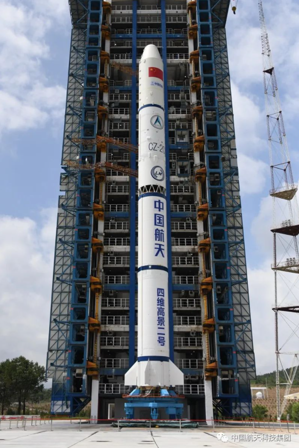 长二丙火箭托举四维高景二号卫星整装待发