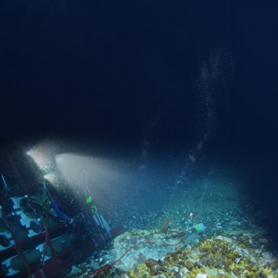 图为中国科学院海洋研究所研制的多代深海坐底长期观测系统在我国南海冷泉开展原位观测。(中科院海洋所供图)