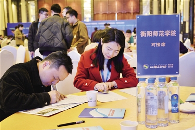 在现场一直忙着与博士沟通的衡阳师范学院人事处师资科负责人兴奋地说:“对比前两年的博士行动,今年最深的感受就是规模更大、影响力更广。23日仅半天的时间,学校就收到了25份简历,还对接了几个急需紧缺专业博士。”
