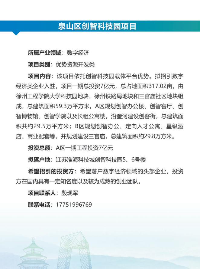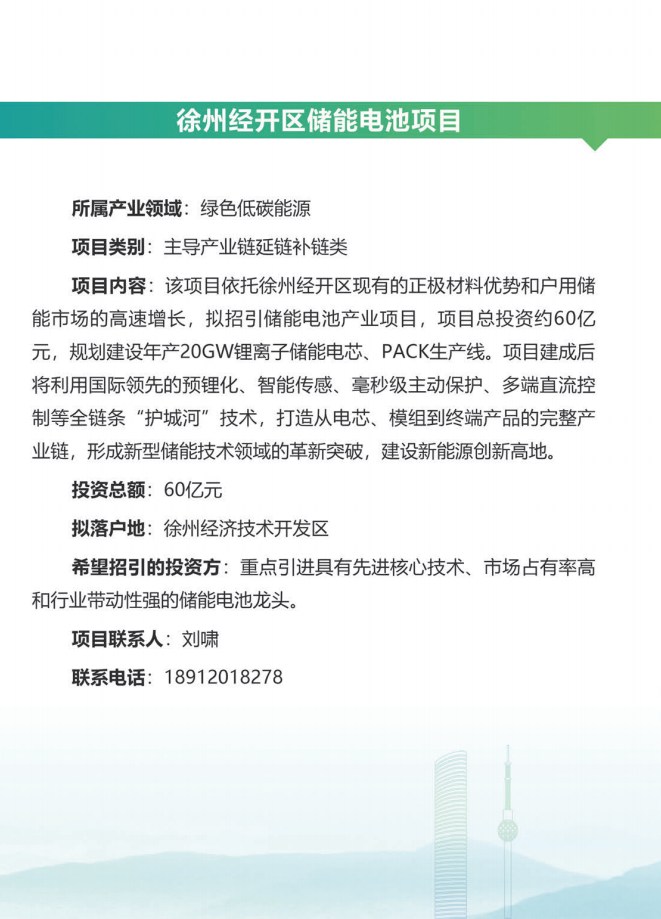 3月20日,我市首批30个“揭榜式招商”项目在徐州(北京)投资洽谈会上发布,涉及徐州13个县(市、区)板块,项目涵盖“343”创新产业集群的全部10个产业,诚意邀请有意向、有实力的企业揭榜洽谈合作。