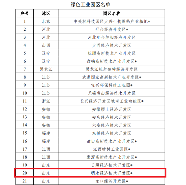 明水经济技术开发区获批“国家级绿色工业园区”