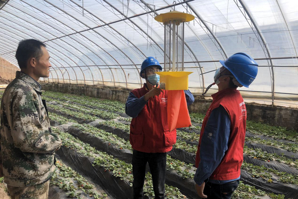 3月28日,国家电网青海电力三江源(海北门源)共产党员服务队队员在“青鲁缘”草莓采摘园帮助客户排查安全用电隐患。张小琴 摄