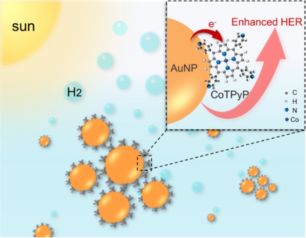 团队利用等离激元结构提升钴卟啉分子催化剂的效率用于产生氢气。图片来源:南京工业大学吕刚教授课题组