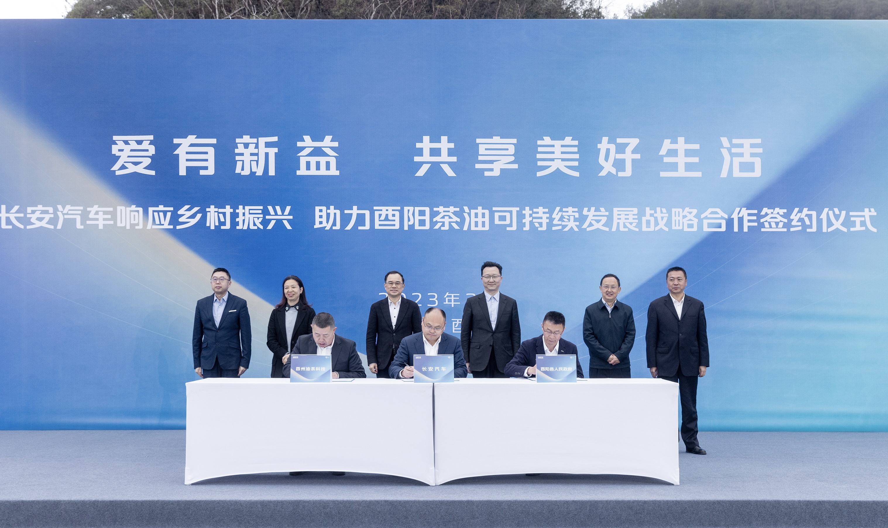 长安汽车响应乡村振兴助力酉阳茶油可持续发展战略合作签约仪式现场。图片来源:长安汽车