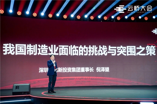 在2023云桥大会·工业互联网峰会上,深圳市创新投资集团党委书记、董事长倪泽望发表了题为《我国制造业面临的挑战与突围之策》的演讲。他指出,中国制造业规模巨大、品类齐全,产业链集群的优势短期内难以替代。但当前制造业发展面临挑战,高质量发展是当务之急。