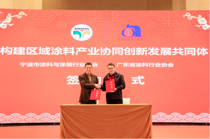 2023年3月24日,宁波涂协召开“2023年宁波涂料产业创新发展论坛暨宁波涂协六届三次会员大会”,大会举行了“构建区域涂料产业协同创新发展”签约仪式,宁波市涂料与涂装行业协会会长汪立波与广东省涂料行业协会秘书长吕水列共同签署相关文件。