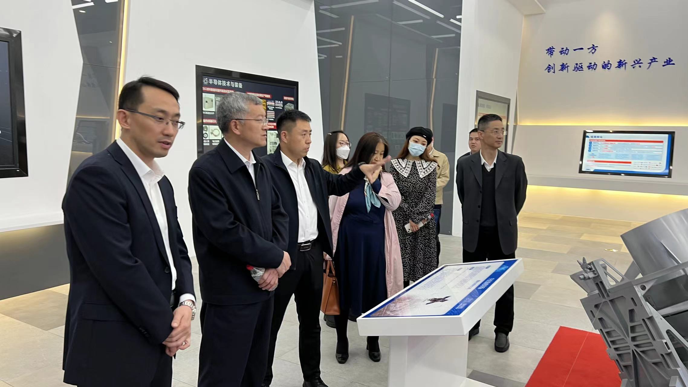 随后,调研组一行到季华实验室C区六楼平台和科技成果展厅,了解实验室在人才队伍、平台建设、科研工作、成果转化、制度创新等方面的建设成效及各项代表性科研成果。