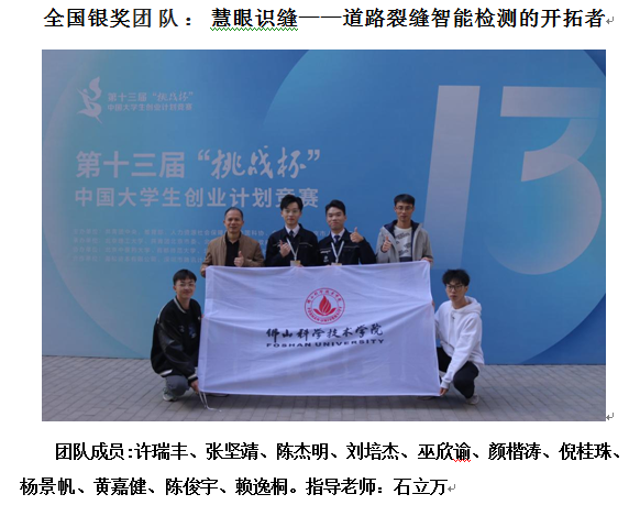 佛科院学子在第十三届“挑战杯”中国大学生创业计划竞赛荣获“两银一铜”好成绩