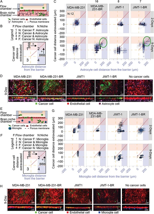 为了解影响癌细胞通过血脑屏障的分子过程,研究人员使用了两个微流控芯片,绘制了癌细胞向大脑迁移的图谱,并观察了血脑生态位中发生的情况。