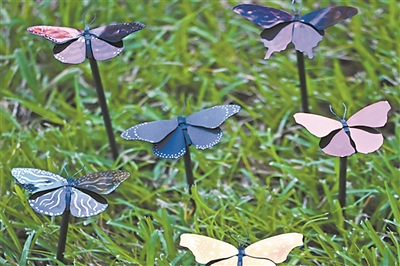 等离子涂料被涂在金属蝴蝶的翅膀上,正是这种昆虫激发了这项研究。图片来源:美国中佛罗里达大学