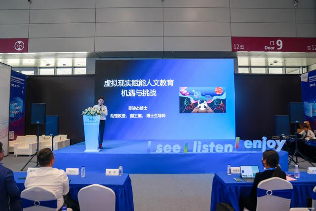 吴骏杰在会上结合国家教育部发布的各项指南,国家教育部将虚拟现实技术明确列入教育信息化重点工作,意味着VR教育在全国教育体系内的推广与应用势在必行。并对教育数字化转型作出分析,当前,沉浸式虚拟现实技术在教育领域的应用备受关注。这条新技术助力的高质量发展道路,必将越走越远,越走越宽。