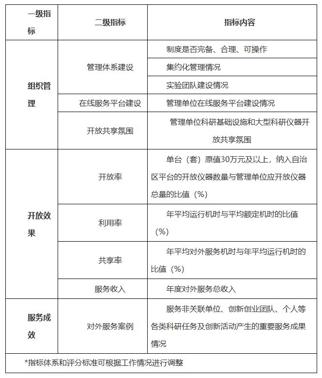 大型科研仪器开放共享评价考核指标