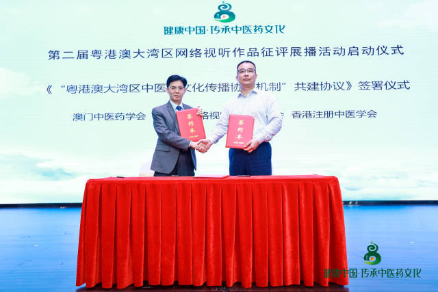 当天的启动仪式上,广东省网络视听新媒体协会、香港注册中医学会、澳门中医药学会三家机构签订“粤港澳大湾区中医药文化传播协作共建机制”协议书,将致力于探索中医药文化传播新路径、新形式、新力量,促进粤港澳大湾区中医药文化传播。