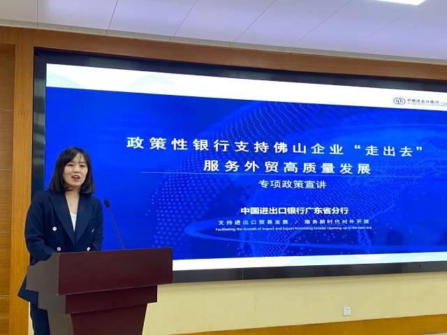 随后,在佛企“出海抢订单”金融政策宣讲会上,多部门合力为佛山外贸企业“走出去”支招——市商务局向与会人员介绍了省、市相关外贸扶持政策;中国信保广东分公司就出口业务风险保障及海外投资风险与金融产品服务、海外风险预警数字化配套服务等进行专题分享;佛山市电子口岸就佛山单一窗口本地特色企业服务进行宣讲;中国进出口银行广东省分行就政策性银行服务外贸高质量发展专项政策、中国银行佛山分行就贸融增信汇率中性等跨境金融服务方案做了专题介绍。宣讲会旨在通过政策宣讲提高企业政策知晓度,有效帮助企业把握机遇开拓市场。