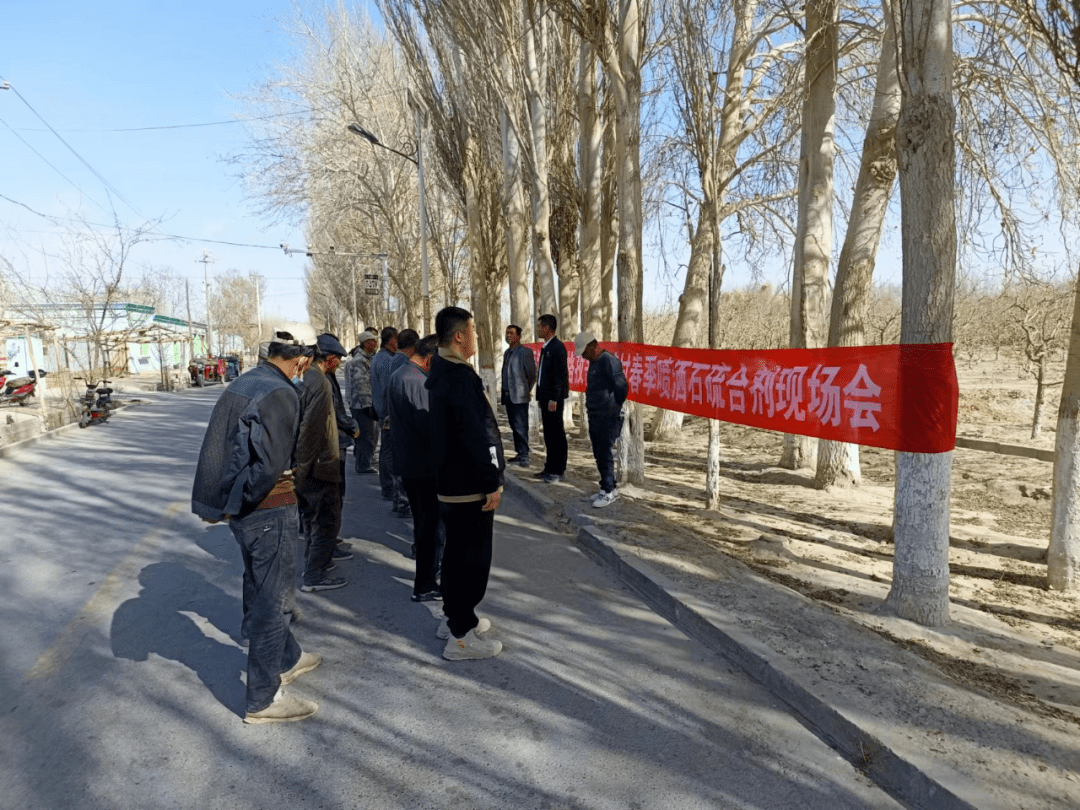 在依格孜吾斯塘村,该村党支部书记李毅以及村党支部副书记艾山·吾斯曼向来参加现场会的群众宣传了枣树喷洒石硫合剂的操作方法和注意事项,并在现场给群众示范如何规范喷洒石硫合剂。石硫合剂,是一种应用广泛的杀菌、杀螨、杀虫剂,可防治多种病虫害。气温回升,病虫害开始初次侵袭,选择在春季枣树萌芽前,喷施3至4波石硫合剂稀释液,能够对枣树上的蚧壳虫、红蜘蛛、大球蚧等病虫害起到很好的防治作用。