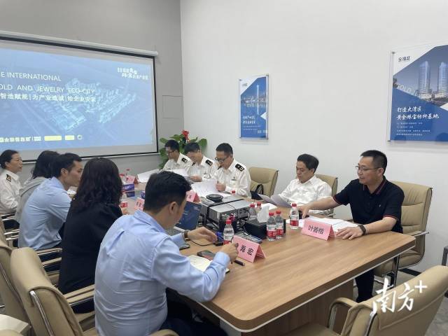 自3月8日佛山市全球黄金珠宝产业投资大会后,金福盛黄金珠宝时尚产业园发展势头向好。座谈会上,园区相关负责人汇报了最新发展情况。与会人员还就目前海关支持黄金珠宝产业链补链、强链、延链、建链的政策要求与企业在进出口通关环节的堵点等方面展开讨论。