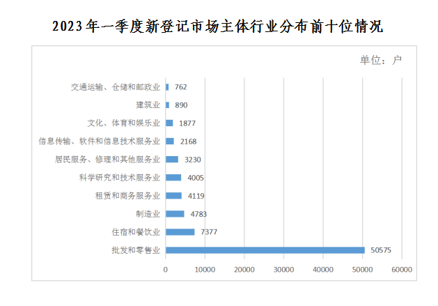 2023年一季度新登记经营主体行业分布前十位情况。来源于佛山市市场监管局