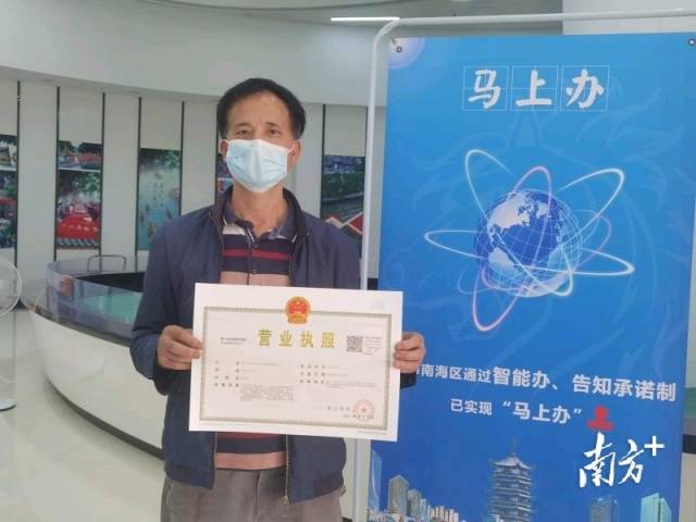 市民在南海区九江行政服务中心网办专区申报并成功领取餐饮类营业执照。通讯员供图