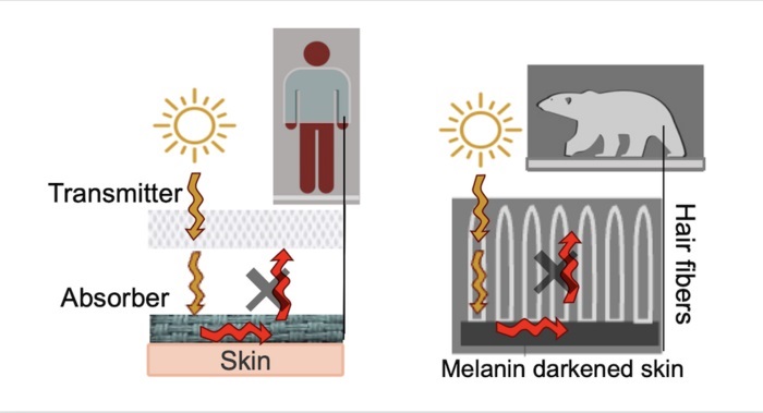 许多极地动物积极利用阳光来维持体温,北极熊的皮毛就是一个众所周知的例子。几十年来,科学家们已经知道熊的部分秘密是它们的白色皮毛。人们一般认为黑色皮毛会更好地吸收热量,但事实证明,北极熊的皮毛在将太阳辐射传输到皮肤方面非常有效。