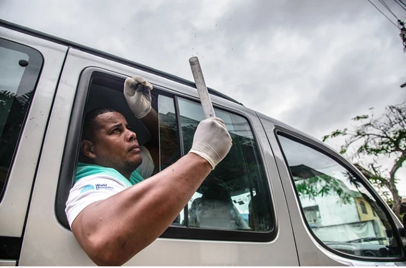 世界蚊子计划(WMP)的一名工作人员在巴西尼泰罗释放了感染沃尔巴克氏菌的蚊子。图片来源:WMP