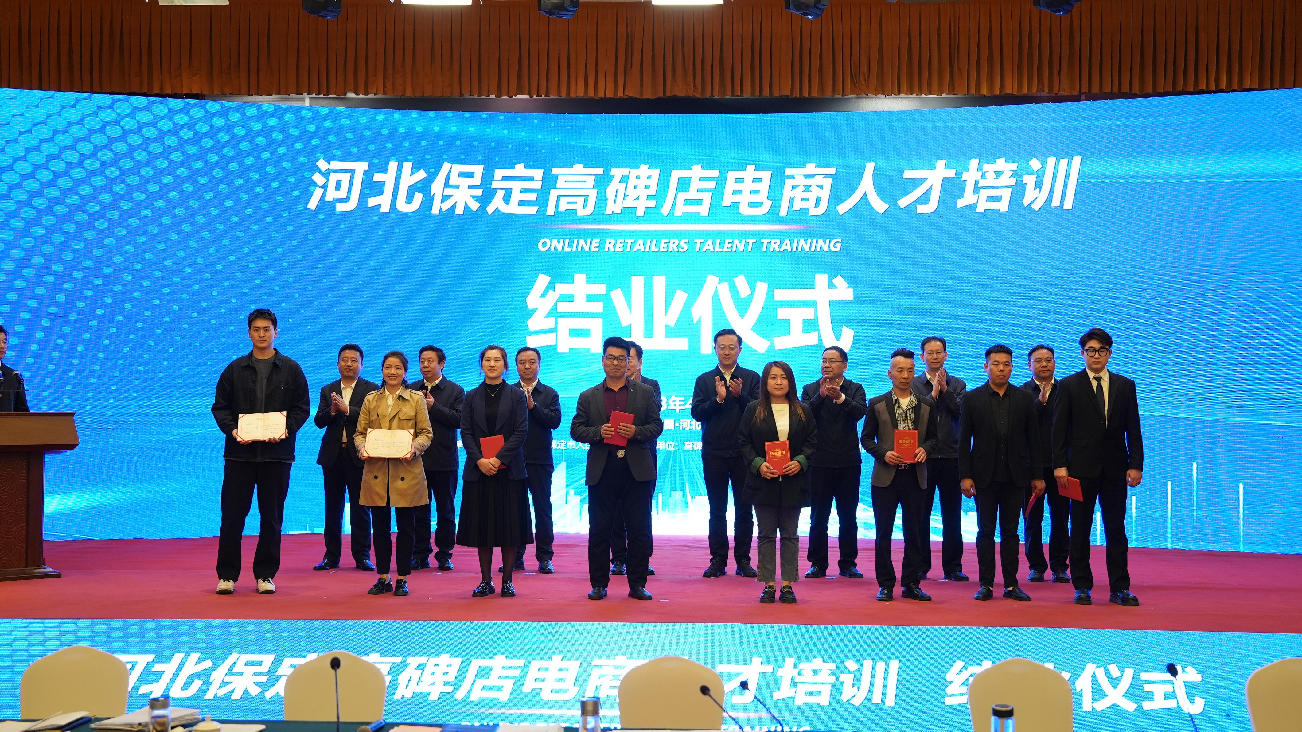 结业仪式上,河北省商务厅厅长张泽峰、保定市委书记党晓龙等省市领导共同为学员代表颁发结业证书,并为首横生鲜电商直播基地2022—2023年度“河北省电子商务示范基地”揭牌。同时还举行了友好结对和电商人才全产业链孵化支持签约仪式。