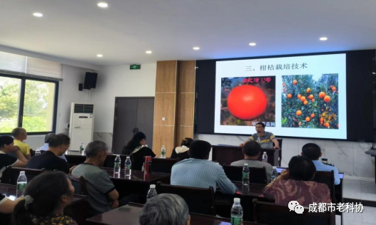 4月18日区老科协在双流区永安镇梨园村举办了柑桔技术培训,梨园村柑桔种植合作社和种植户45人参加了培训。区老科协科技支农助农服务小分队胡海林,唐明全和付加林三位农业专家作了专题培训,图文并茂的详细讲解了梨园村现种植的沃柑、爱媛、红肉脐橙、默科特杂柑、甘平等品种当前的管理技术和管理措施;讲解了柑桔常见红蜘蛛、星天牛、黄龙病、凤蝶等病虫害发病规律,以及化学和生物防治方法;讲解了柑桔标准化生产模式,从建园、规格、施肥量(幼树和成年树)、叶果比、留果量、采后处理等方面,细化了各项标准化要求。