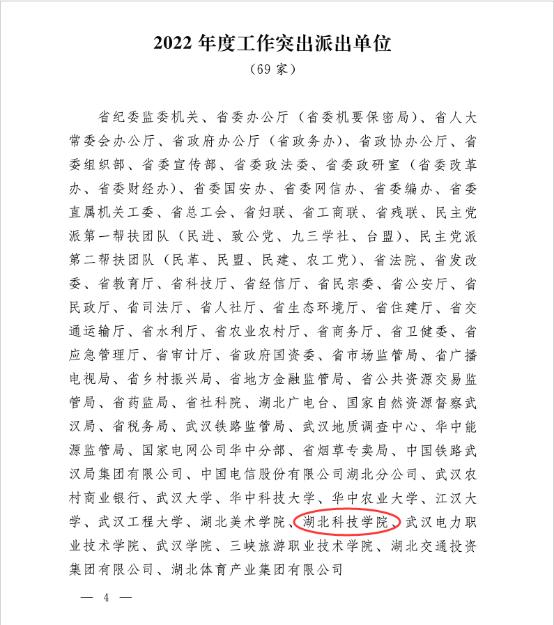 湖北科技学院乡村振兴驻村工作受省委通报表彰