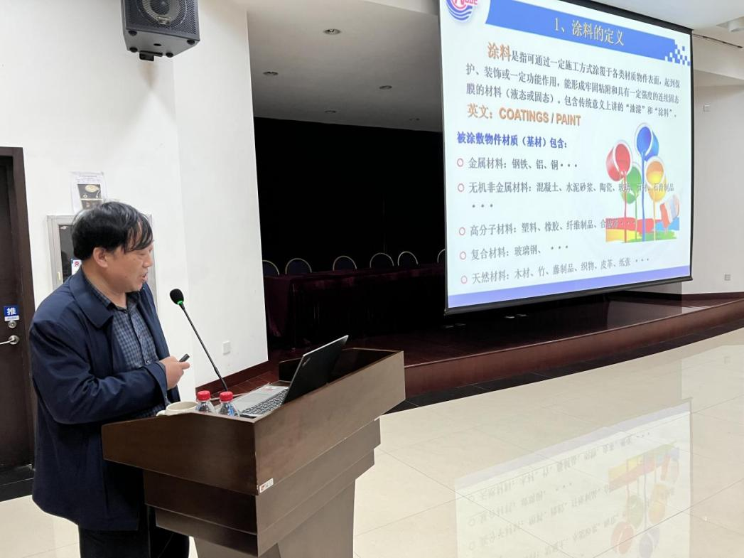 下午,在会议室举办了涂料基础知识培训,参加培训课的人员有50余人,邀请了中国化工学会涂料涂装专委会宁波服务站、中海油常州涂料化工研究有限公司孔志元研究员进行授课,本次的培训主要围绕涂料的组成、技术工艺、施工技巧等多个维度展开,孔志元研究员将自己丰富的专业知识融入课程中,通过复杂问题简单化、理论知识通俗化的方式,进行浅显易懂、深入浅出的讲解,让参会人员以最快的方式学到了技能技巧的精髓。