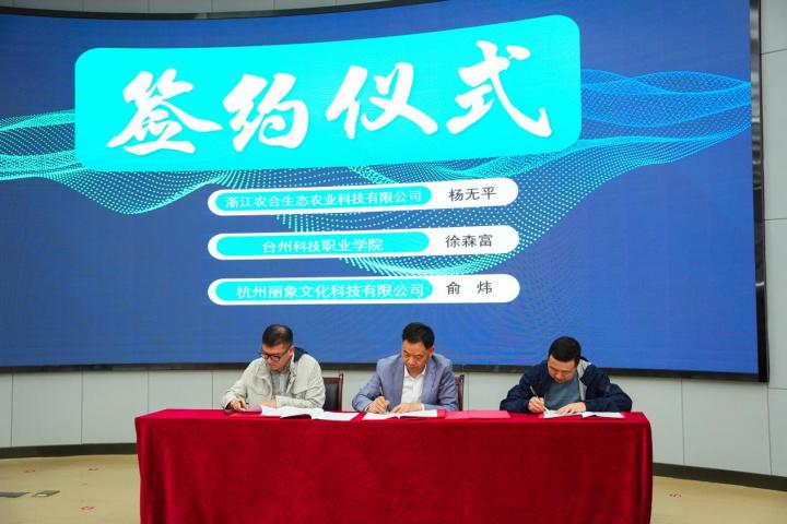 启动仪式上,台州科技职业学院、浙江农合生态农业科技有限公司、杭州丽象文化科技有限公司现场签订了校企合作协议,为后续的合作项目提供保障,开启三方校企合作的新篇章。