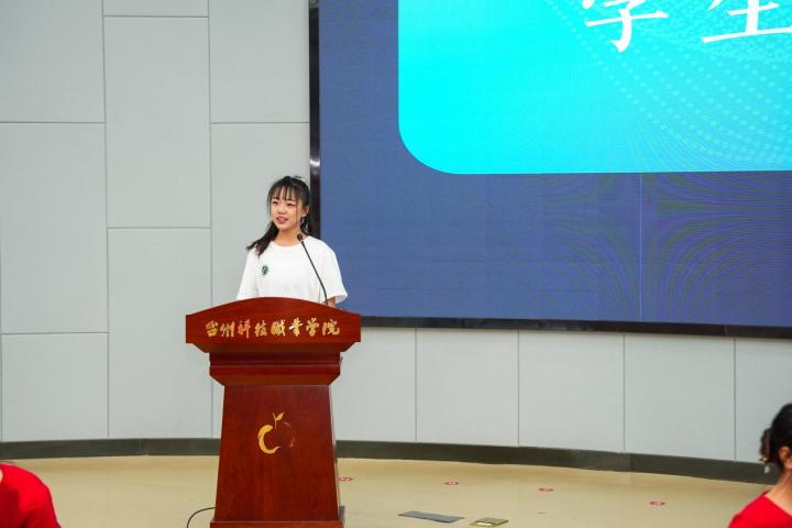 台州科技职业学院电子商务专业的刘圆圆同学作为大赛选手代表发言,她讲述了在这次直播训练营中的切身体会和收获,通过校企双导师的培训,她在语言表达、直播技巧方面有了很大的进步,会在接下来的比赛中继续努力。