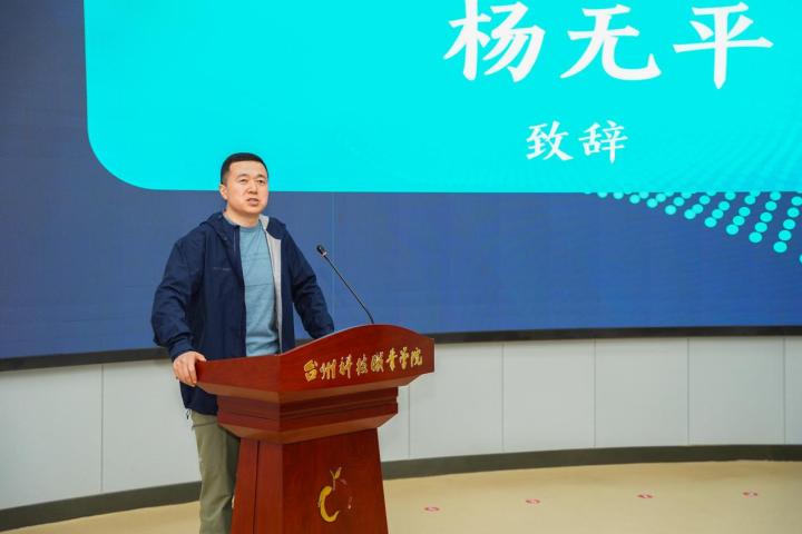 杨无平代表企业致辞,介绍了“浙里汇”平台是由9个省直部门联合推出的消费扶贫购销平台,用于引导社会各界通过消费帮扶对口的地区实现农民增收。本次直播大赛提供了来自对口帮扶地区和省内26个发展县的农特产品,为学生的实践锻炼提供产品支撑。希望学生们能够在比赛中发挥专业所学,结合自身的优势和特长,取得好的成绩。