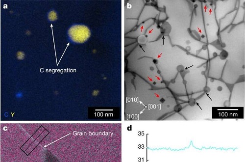 该团队使用“蠕变试验”对得到的新合金进行了测试。蠕变试验是测定材料在长时间的恒温和恒应力作用下,发生缓慢的塑性变形现象的一种材料机械性能试验。试验持续的时间越长,材料的抗压能力就越强。目前的顶级材料通常持续约10小时,GRX-810持续6500小时,抗压能力提升了600多倍。