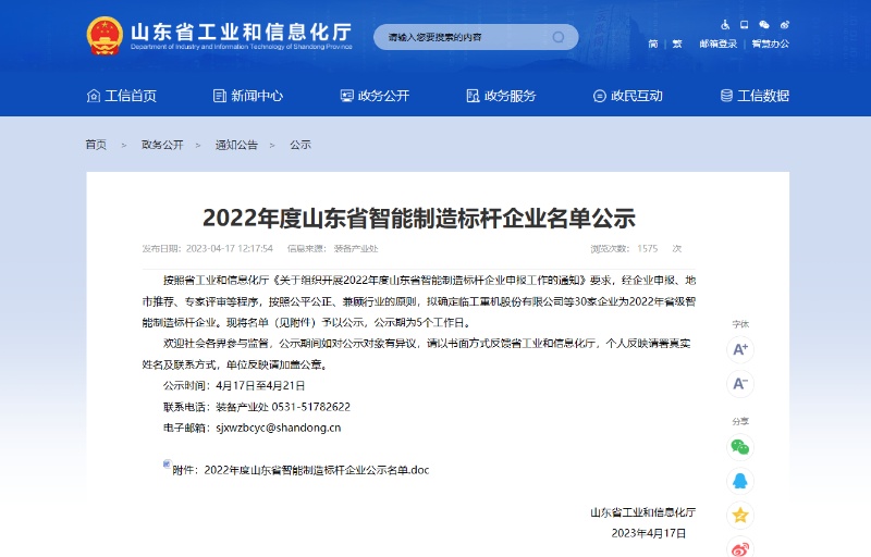 近日,山东省工信厅公示了《2022年度山东省智能制造标杆企业名单》,济南市三家企业入选,力诺特玻成功上榜,成为商河县首家省级智能制造标杆企业。
