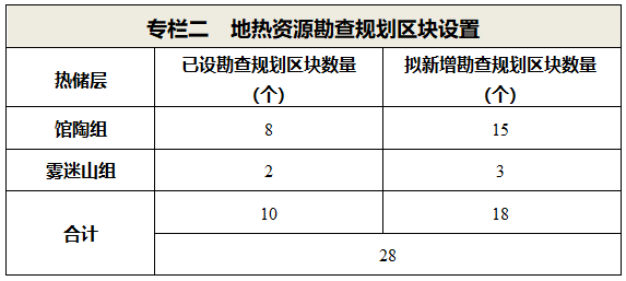规划期内拟新增勘查规划区块18个,其中馆陶组15个、雾迷山组3个(专栏二)。