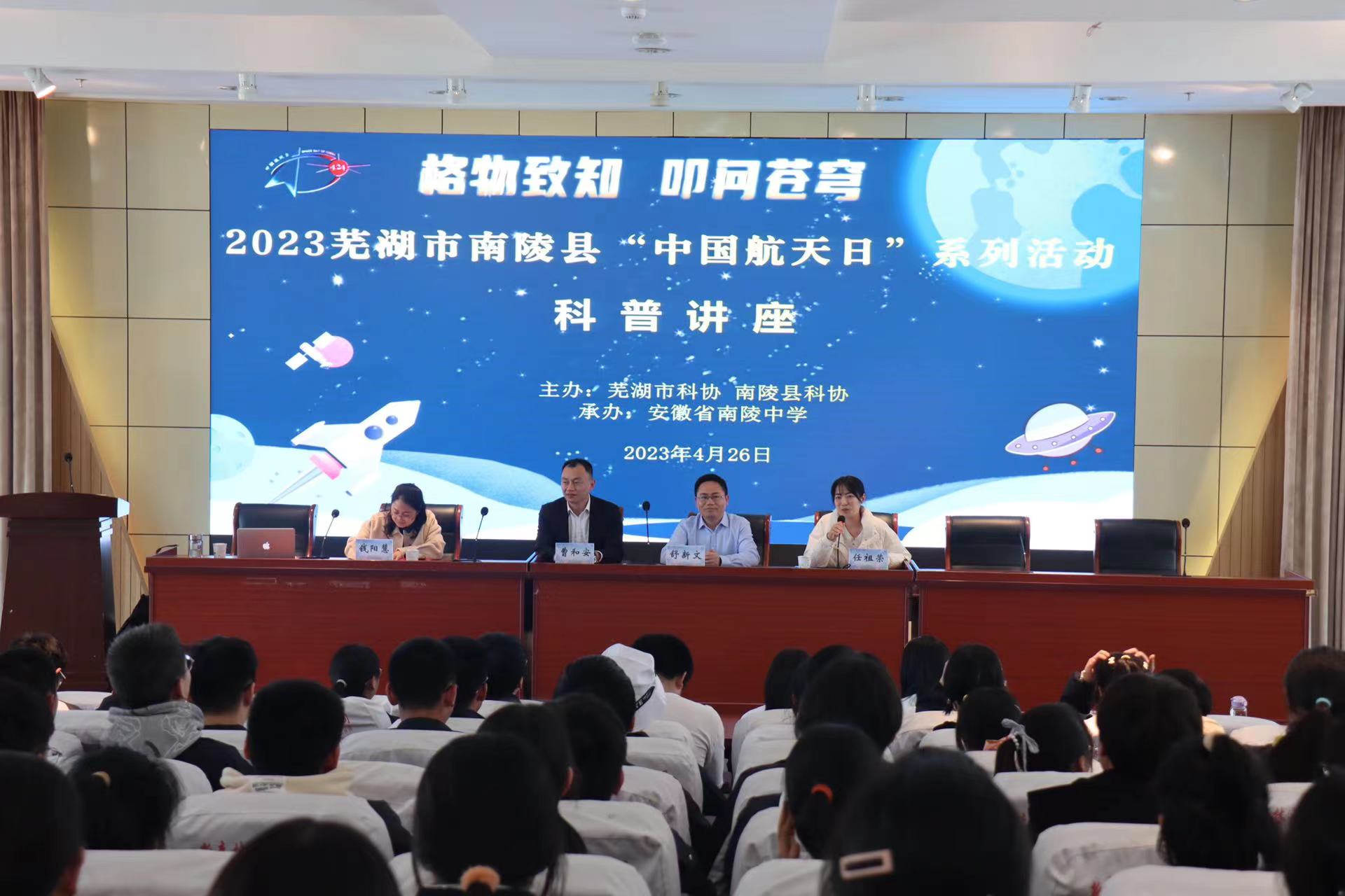 4月26日下午,在第8个“中国航天日”来临之际,南陵县科协在芜湖市科协和九三学社芜湖市委的大力支持下,邀请安徽师范大学物理与电子信息学院教授、博导舒新文为南陵中学200余名学生开展了一场以“格物致知,叩问苍穹”为主题的航天航空科普讲座。