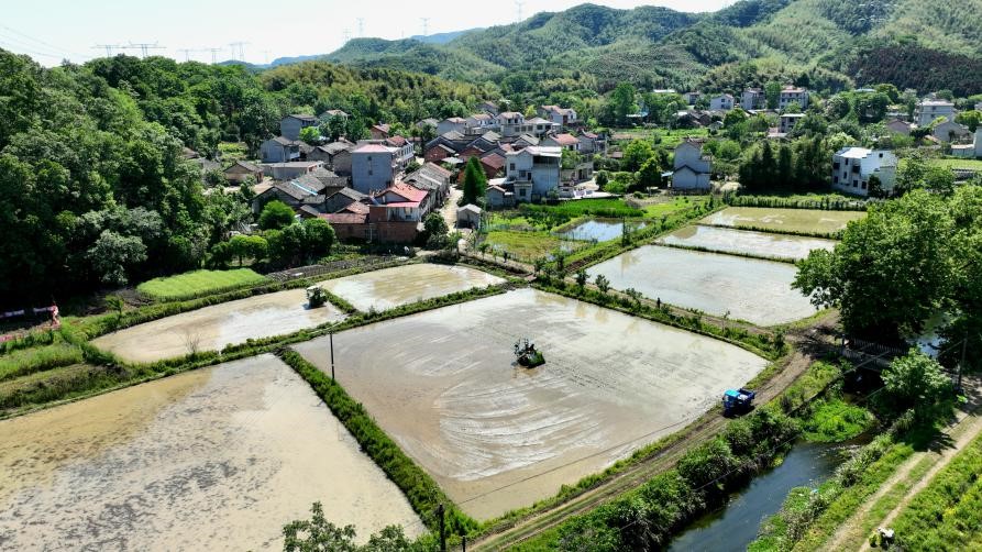 种粮大户田辉正利用高速插秧机栽插早稻。插秧机在田间来回穿梭,不一会儿,秧苗被整齐地插进泥土中。田辉说今年插秧的效率比往年要高,秘诀就在于,他今年使用了麻地膜育秧新技术。