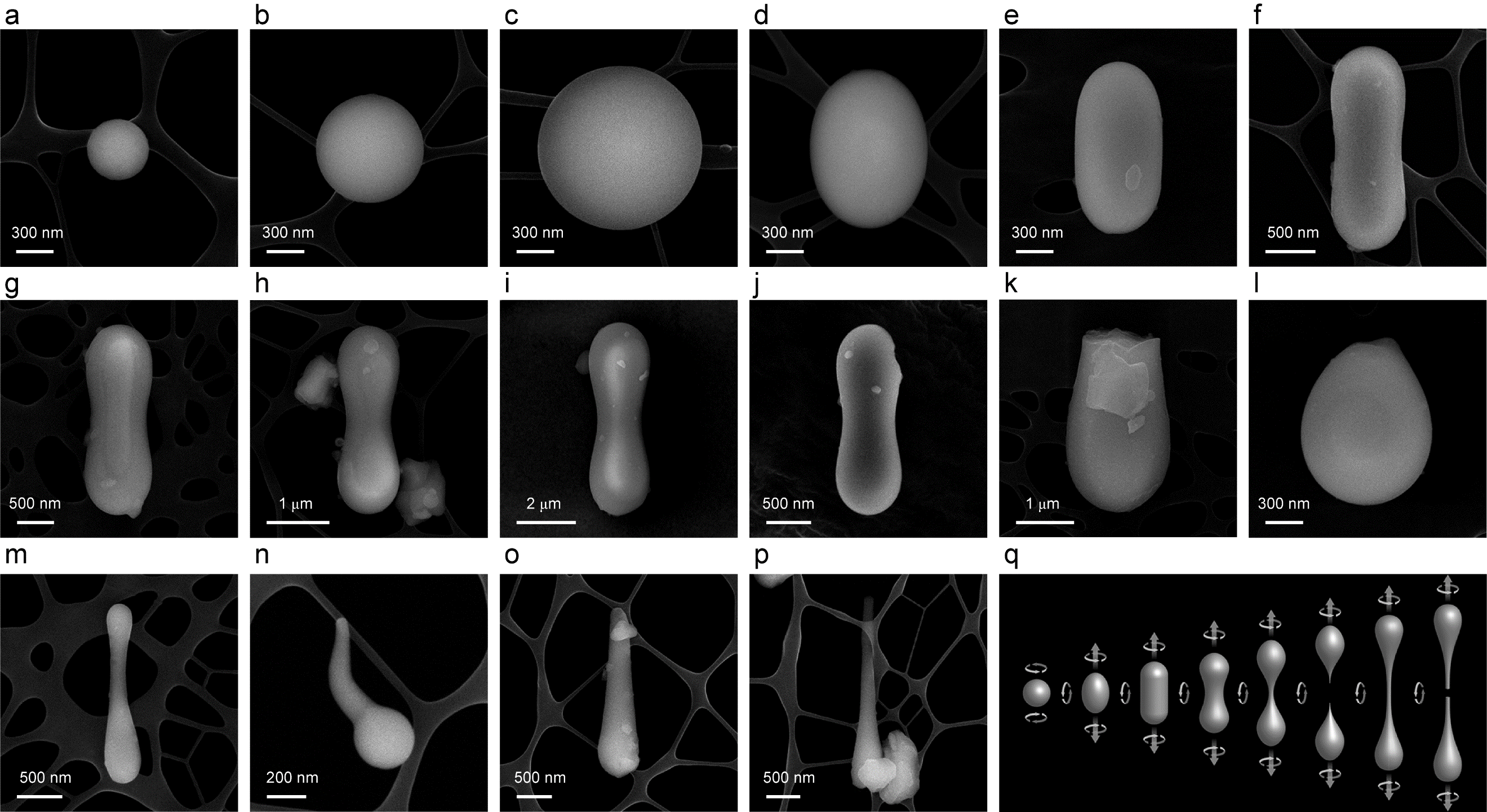 嫦娥五号月壤中球状、椭球状、哑铃状等旋转特征的玻璃珠。图片来源:中科院物理所
