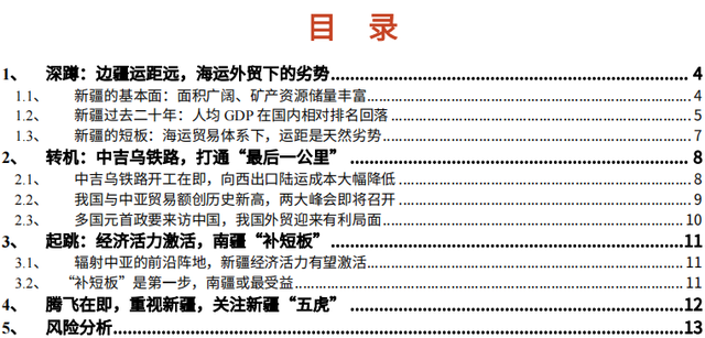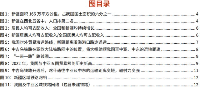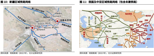 起跳:南疆地区将迎来“补短板”,新疆将成为向西出口的前沿枢纽。随着制约因素逐步解除,我们判断新疆地区存在“补短板”需求,中吉乌铁路起点喀什市所在的南疆地区可能是本轮“补短板”最具弹性的区域。中吉乌铁路和泛亚铁路的建设,将提升新疆地区的经济活力,带动各个产业方向的发展。新疆作为“一带”的前沿阵地,其供给、需求将不仅仅局限于当地,亦可溢出至中亚地区。