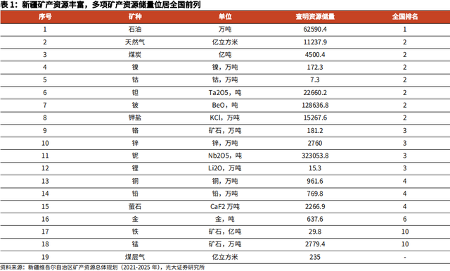 1.1、新疆的基本面:面积广阔、矿产资源储量丰富