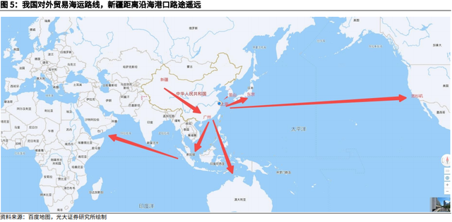 1.3、新疆的短板:海运贸易体系下,运距是天然劣势