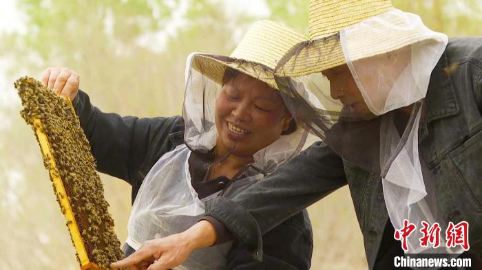 新疆巴州且末县蜂农陈清华说:“目前,我有两百多个箱,每箱里面都有上万只蜜蜂。勤劳的小蜜蜂穿梭在娇艳的大芸花中,既酿出了芬芳的花蜜,也为大芸完成授粉助了力。”