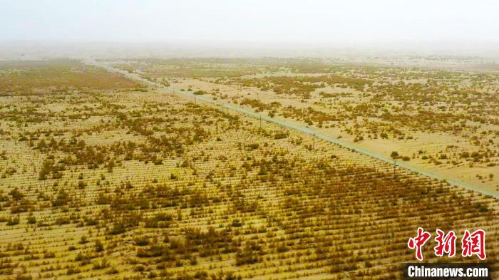 中新网乌鲁木齐5月9日电 (王小军 刘雨珊 阿曼江·阿力甫)进入五月,新疆巴州且末县的10.39万亩大芸迎来开花季,绚烂的花朵盛开在黄沙遍野的塔克拉玛干沙漠当中。