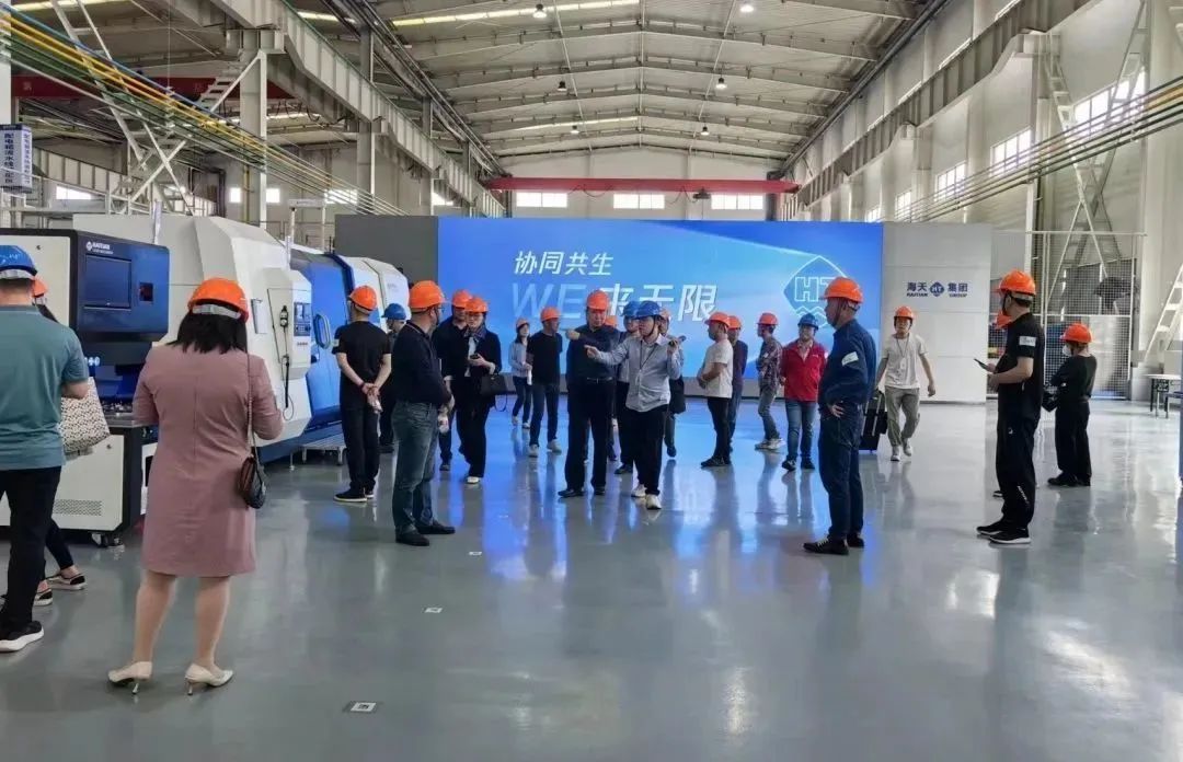 参访团一行在海天相关负责人的带领下,实地参观了海天集团的数字体验中心和总部生产基地,了解海天集团的发展历程,集团布局和海天旗下几大产业的特征与优势,以及智联技术、新兴数字媒体技术等数字化管理设备、精密产品制造和装配车间。高包容性与高标化的设计,成熟的设备研制、驱动及控制系统研制和高度自动化作业的生产线,令参访企业家颇为震撼。