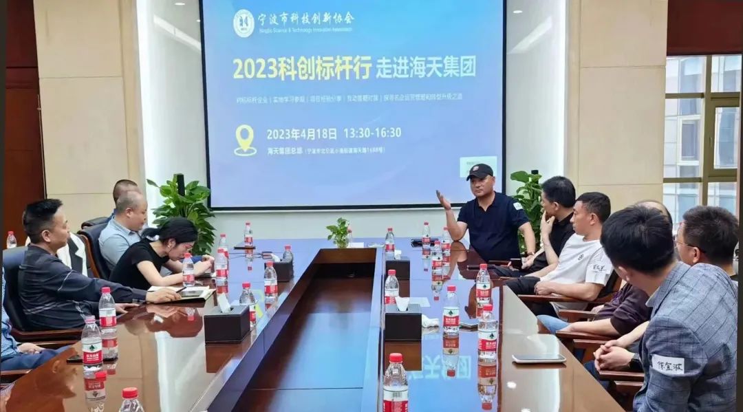 2023年4月18日下午,宁波市科技创新协会“2023科创标杆行之走进海天集团”主题活动圆满举办。宁波市科技创新协会秘书长徐宏飞、副秘书长周燕出席了会议,近30位协会会员企业家参与了本次活动。海天集团科技项目管理中心主任林仁友热情接待了参访团一行。
