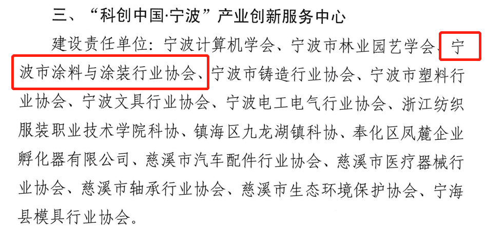 5月15日,宁波市科学技术协会发布《关于设立2023年度“科创中国·宁波”创新服务平台的通知》,宁波涂协“科创中国·宁波”产业创新服务中心重新认定通过。