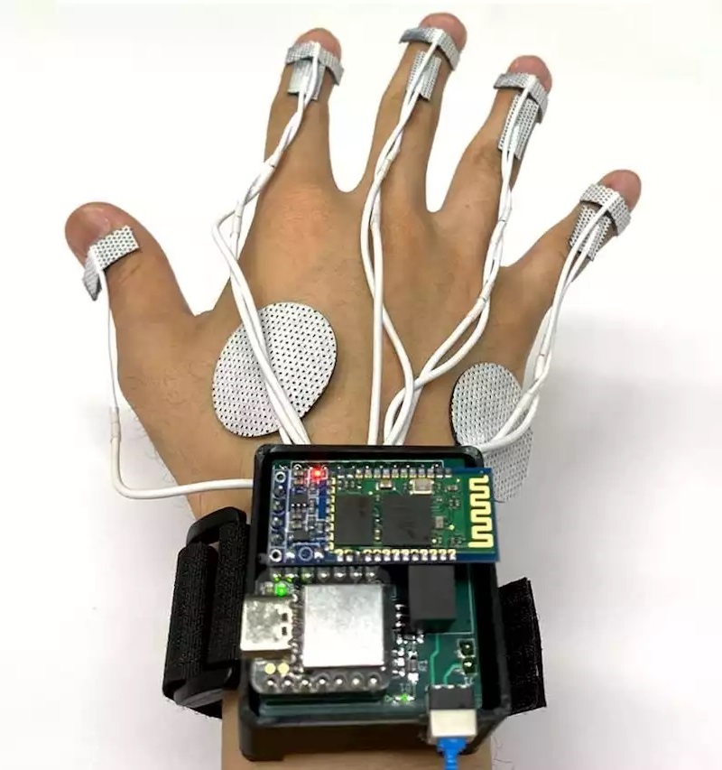 芝加哥大学田中雄大团队开发出了一种设备,使用手背和手指上佩戴的电极网来模拟或增强触觉,使手掌和手指不受阻碍地活动。神经刺激会使单个手指感觉好像在触摸什么东西,因为人类的手掌比手背有更多触摸感受器来接收电极发送的电信号。