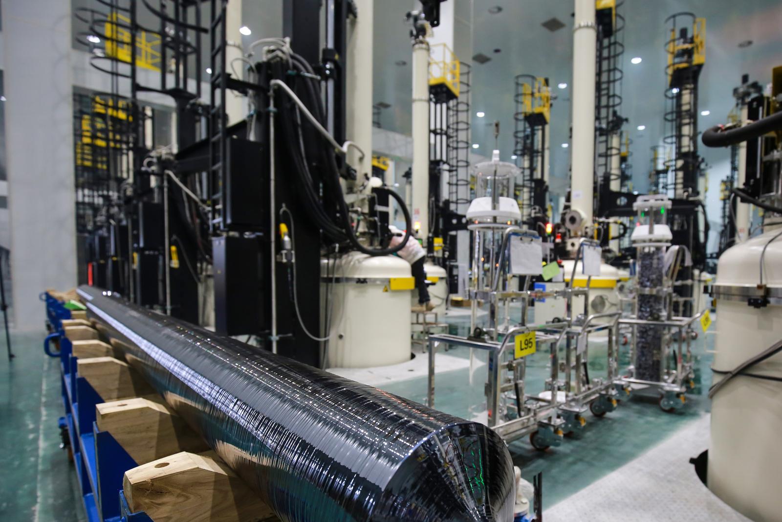 4月19日,在银川隆基光伏有限公司,整齐排列着一排排细长的智能化单晶炉,硅矿石被添加到智能化单晶炉,经历多道工序后进行硅棒拉制,最终通过收尾工序完成整根硅棒的制备,得到特定尺寸要求的圆柱形单晶硅棒。