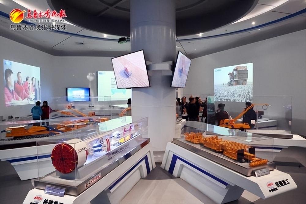 在铁建重工新疆有限公司展示厅,来宾正在参观了解该企业产品。