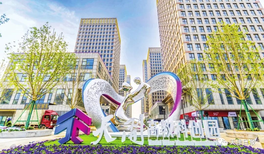 近日,天开高教科创园西青园主雕塑亮相。雕塑总高21米,底座宽7米。